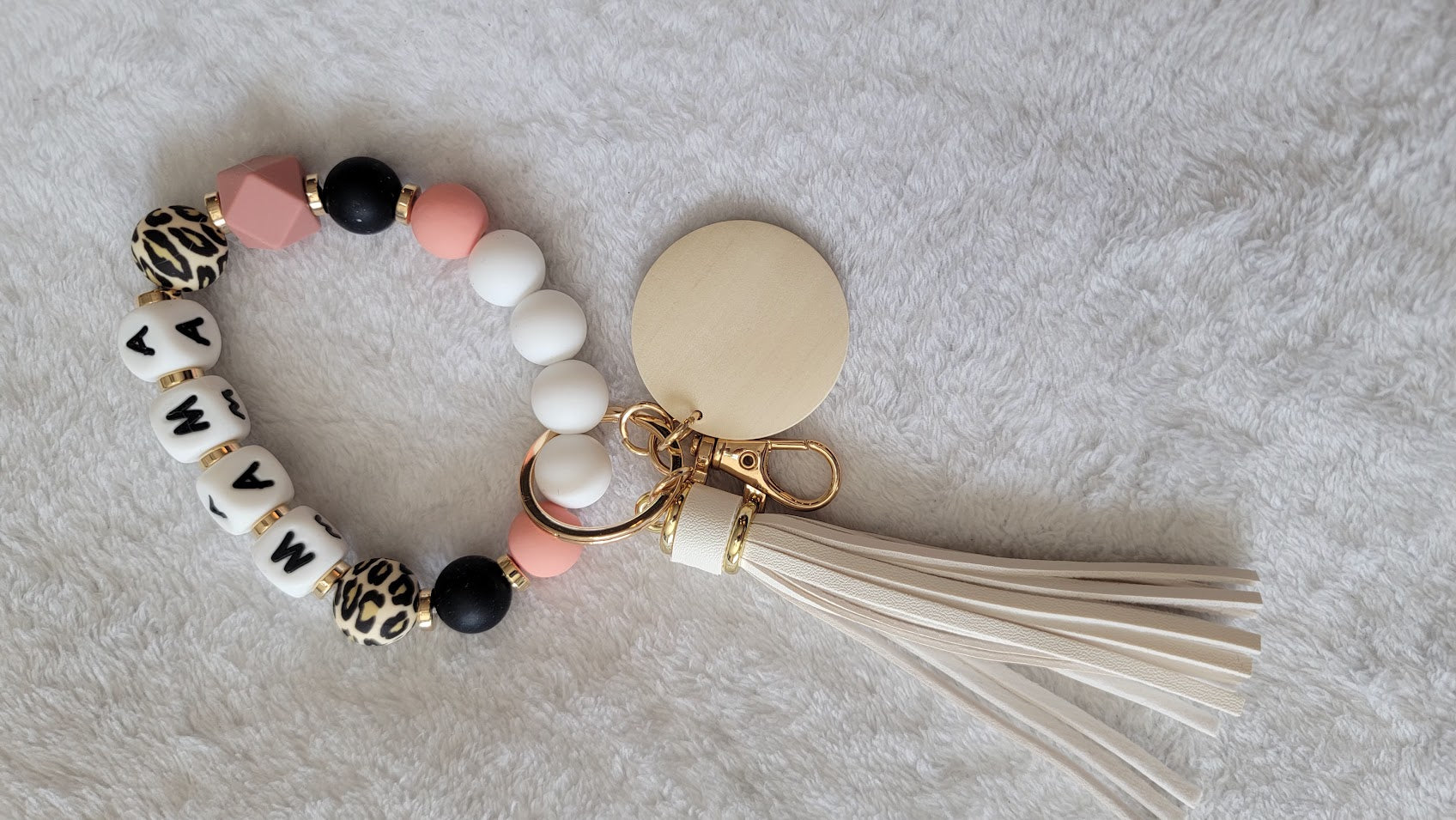 This beaded wristlet keychain is a stylish and convenient accessory for any busy mom. Made with durable silicone beads, it adds a pop of color to your keys while keeping them easily accessible. The "mama" charm adds a touch of sentimentality, making it the perfect gift for any mother. Available in multiple color options.