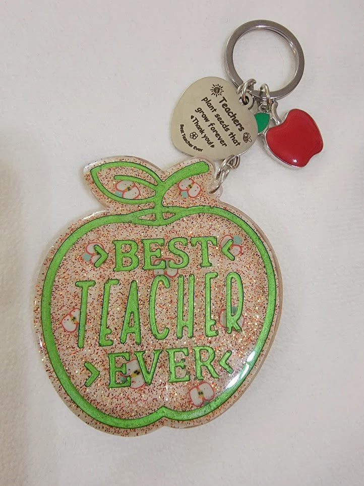 Celebrate the amazing teachers in your life with our "Best Teacher Ever" keychain. Perfect as a gift, this keychain is a thoughtful way to show appreciation for their hard work and dedication. Let them know they are valued and make their day with this special token of recognition.