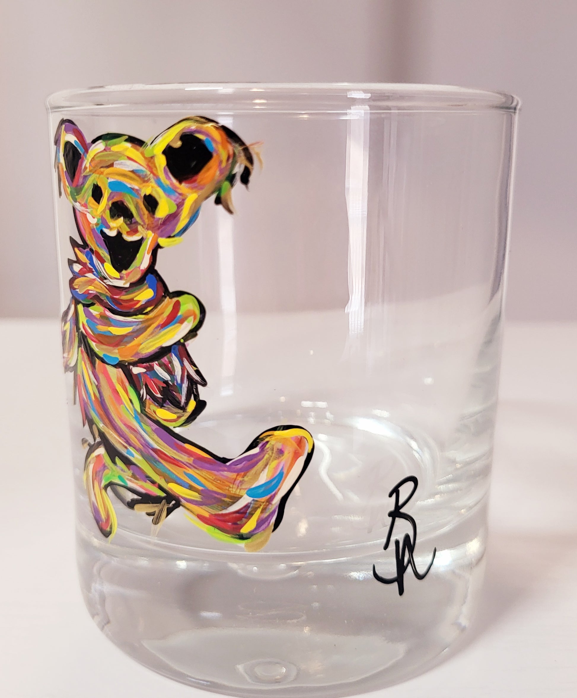 This dancing bear is a truly one-of-a-kind piece, hand painted and perfect for any band groupie. With its unique design and intricate details, it is sure to be a conversation starter and a prized possession in any collection. Bring home the joy of music and art with this dancing bear.