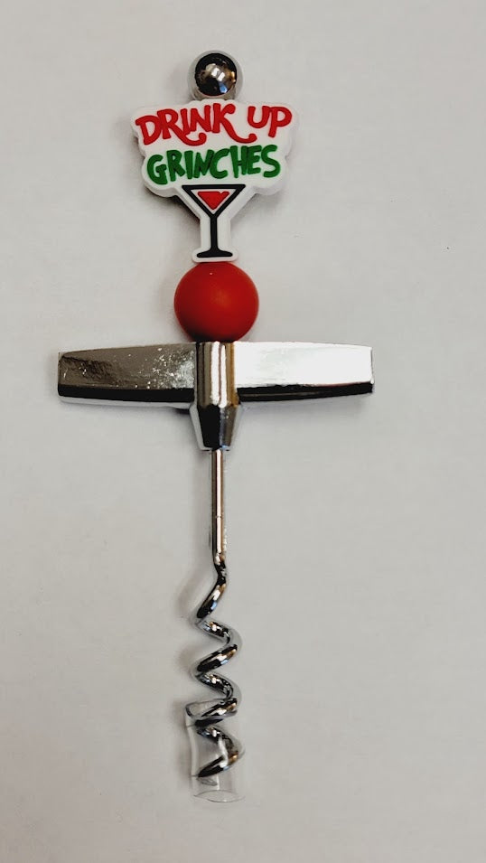 Get festive with the "Drink up Grinches" cork screw! This handy tool is perfect for opening up your favorite bottles of wine during the holiday season. Let your inner Grinch out and enjoy a nice glass of wine with your loved ones! No more struggling with stubborn corks, thanks to this festive cork screw.