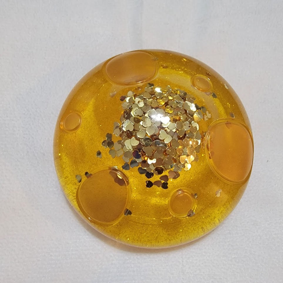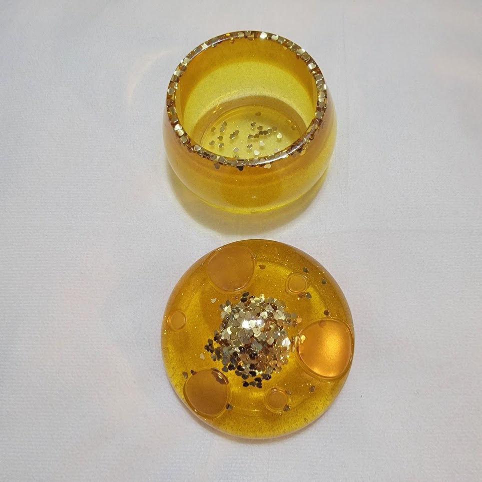 This Golden Mushroom trinket box is the perfect way to store small items. Crafted with a golden mushroom, it features gold heart flakes for a charming look. Keep your favorite jewelry, accessories, and more safe and stylish.