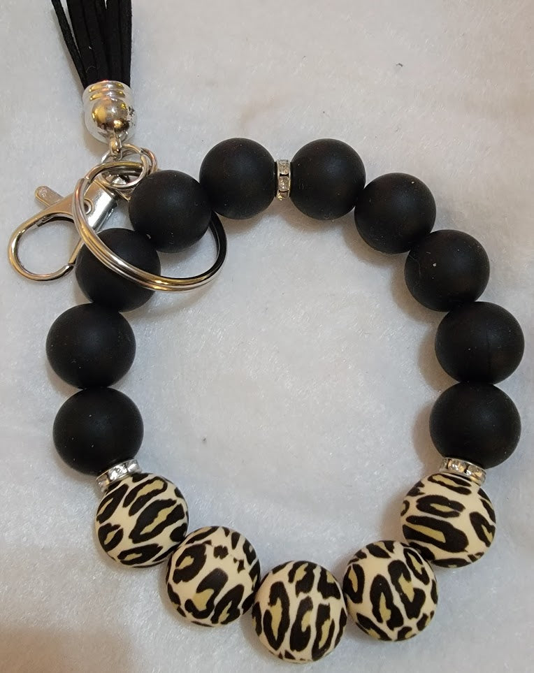 A chic and stylish addition to any set of keys, the Leopard Wristlet Keychain is crafted with leopard and black silicone beads and a black tassel. Durable and easy to store, this accessory will bring a touch of fun to any outfit.